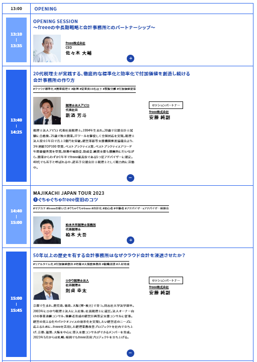 下記がfreee Advisor Day2023@大阪会場でのタイムスケジュールです。