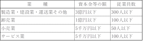 ○中小企業者を対象に設けられた制度のため、資本金等の額または従業員数のいずれかが一定の範囲内の場合に加入できます。その範囲を抜粋したのが以下の表です。