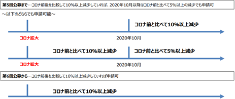 「2020年10月以降の連続する6か月間のうち、任意の3か月の合計売上高がコロナ以前と比較して5%以上減少していること」
