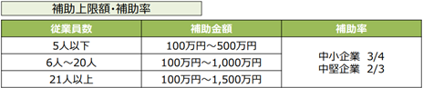 補助上限額・補助率は下表の通りです。