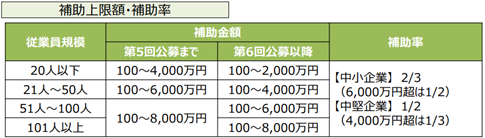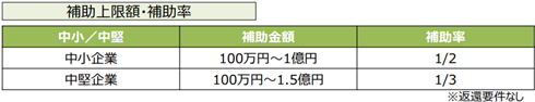 補助上限額・補助率は、下表の通りです。