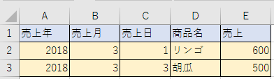 また、売上は単価×個数で計算が行われるため、入力が必要なのは「売上日」「商品名」「個数」の3項目です。