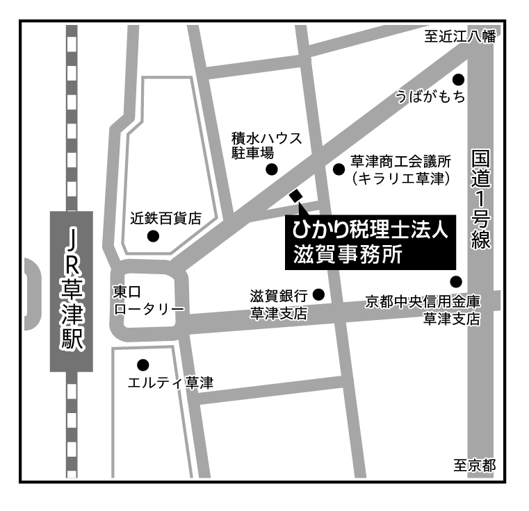 補遺 新しい滋賀事務所の所在地は下記の通りです。JR草津駅東口から徒歩3分の至便な場所ですので、お近くにお越しの際は是非お立ち寄りください。