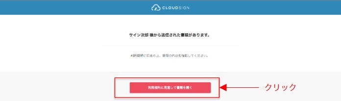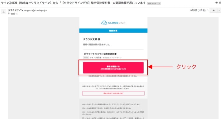①クラウドサインから届いた「確認依頼」メールに記載されたリンクをクリックします。