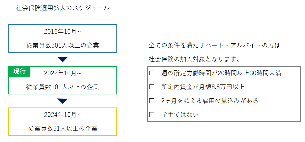 また、2016年10月よりパート・アルバイトの社会保険の加入条件が段階的に拡大されており、現行の制度では、年収が106万円(8.8万円×12ヶ月)以上となった場合に、一定の条件を満たすと社会保険に加入する必要があります。