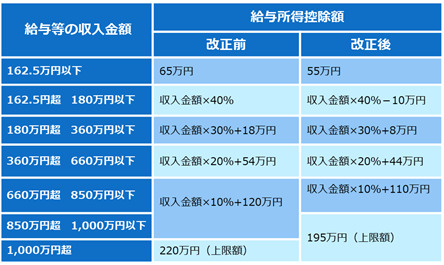 - 給与所得控除の上限額が適用される給与等の収入金額を850万円、その上限額を195万円に引き下げられます。