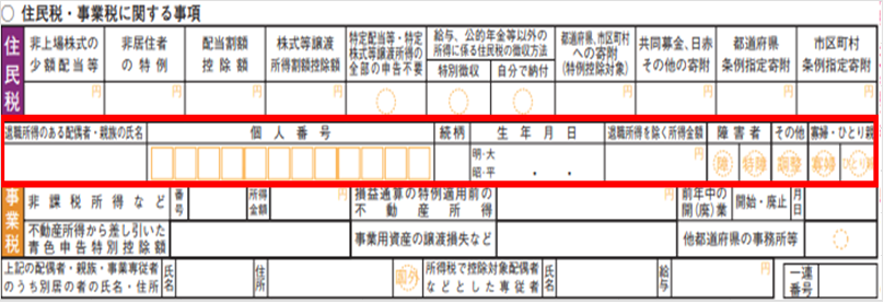 2022年中(令和4年中)に退職所得のある扶養親族等の退職所得の金額を除いた合計所得金額が48万円以下になる場合に記載します。