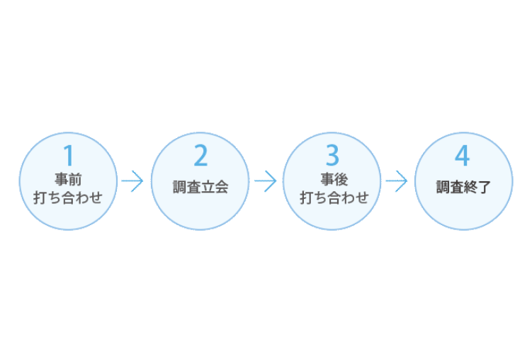 調査直前に会社に訪問し、資料確認と整備の打ち合わせをいたします。特に商品の保管方法など実際に現場でしか確認できない事項についても、精査いたします。