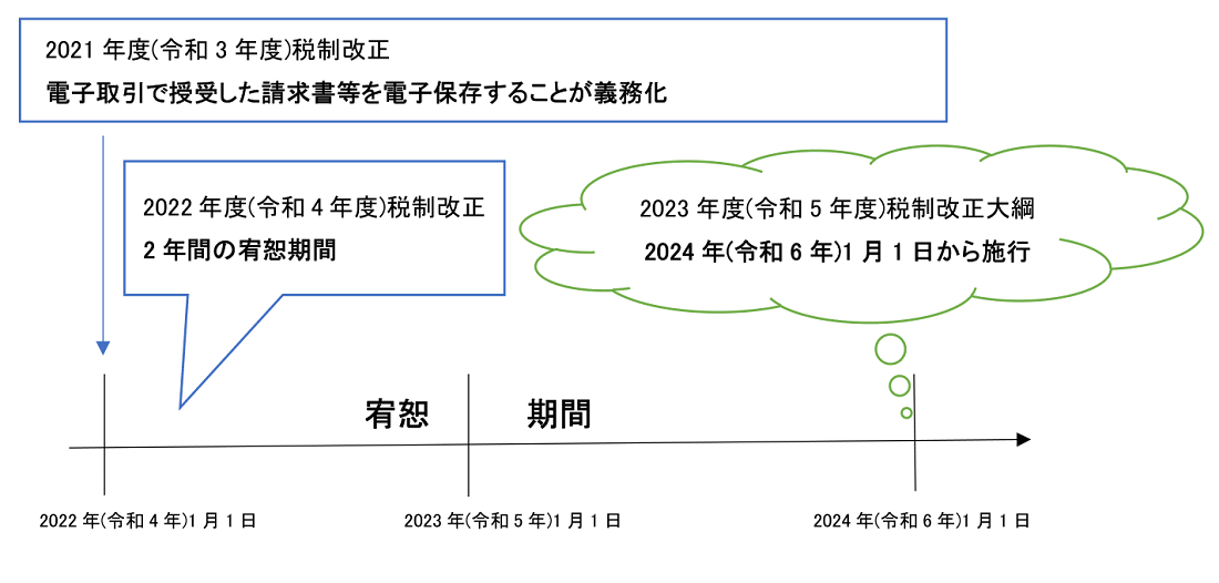 ただし、現実にはこれらの対応が期限(2022年(令和4年)1月1日)まで間に合わない事業者が多く、2022年(令和4年)税制改正で宥恕措置が盛り込まれました。