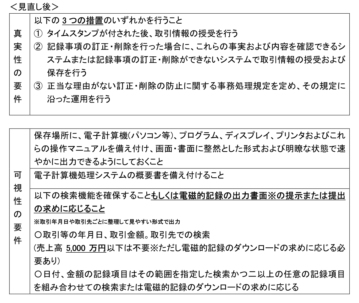 2024年(令和6年)1月1日以降の電子取引に係るデータ保存の要件について、以下の見直しが行われました。