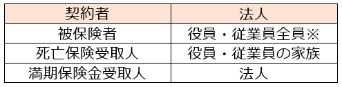 (注)養老保険を福利厚生プランとして導入し、主契約保険料の1/2を損金算入する際は、原則として役員・従業員の全員を対象とすることが必要となります。また、ご契約形態にも一定の条件があります。