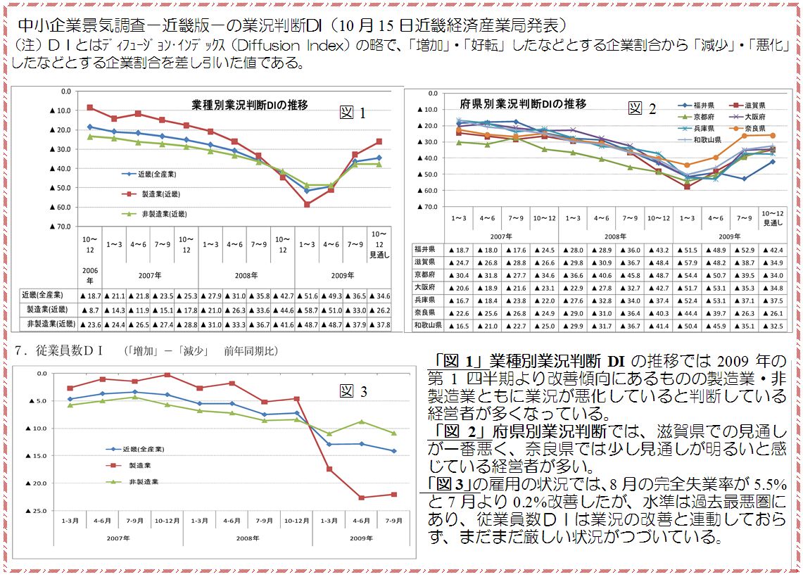 では、地元近畿の状況を見てみましょう。中小企業経営者は、景気回復どころか、景気が「二番底」に陥る危険性について懸念している様子が窺えます。