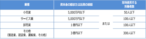 なお、2021年より適用となる中小企業の範囲は、資本金の額または出資の総額と、常時使用する労働者の数のいずれかが基準を満たしていれば、中小企業に該当すると判断されます。(下表参照)