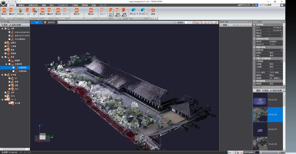 こうした背景から、弊グループの測量部門である有限会社ひかり測量設計では、この取り組みの一環としてドローンや3Dスキャナーを使用し、地形情報をXYZの座標を持った3D点群としてデータ取得する技術を導入しました。