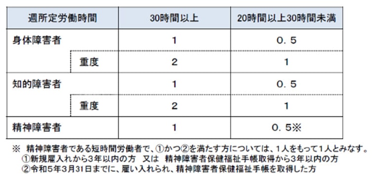 また、障害者のカウントについては下記の表のとおりです。
