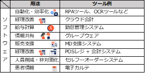 ※表1のソフトウェアと表2のようなソフトウェア以外の費用を組合わせて申請できます