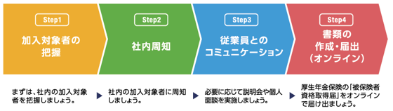 対象者が把握できたら、新たに加入対象となる方に確実に伝わるよう社内システムやメールなどで通知し、対象者を集めた説明会か個別面談のどちらかで説明します。