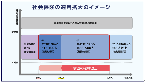 この合計従業員数が101人以上の企業について、2022年10月から社会保険の適用範囲が変更されました。