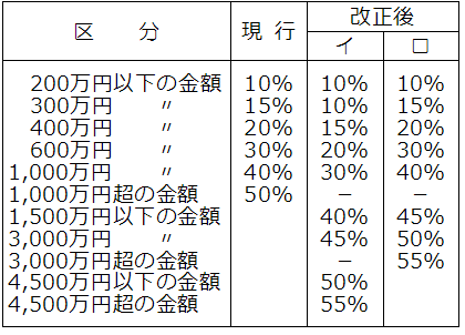 相続税の税率は、最高税率が50%から55%に引き上げられ、税率構造は6段階から8段階に区分されます。